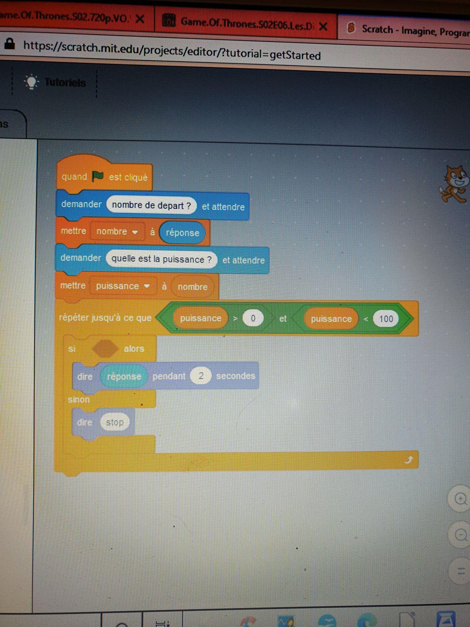 pourrait ton me dire si ledebut de mon programme est correct car j ai de tres grosses difficultes avec scratch et j aimerais bien reussir a le faire