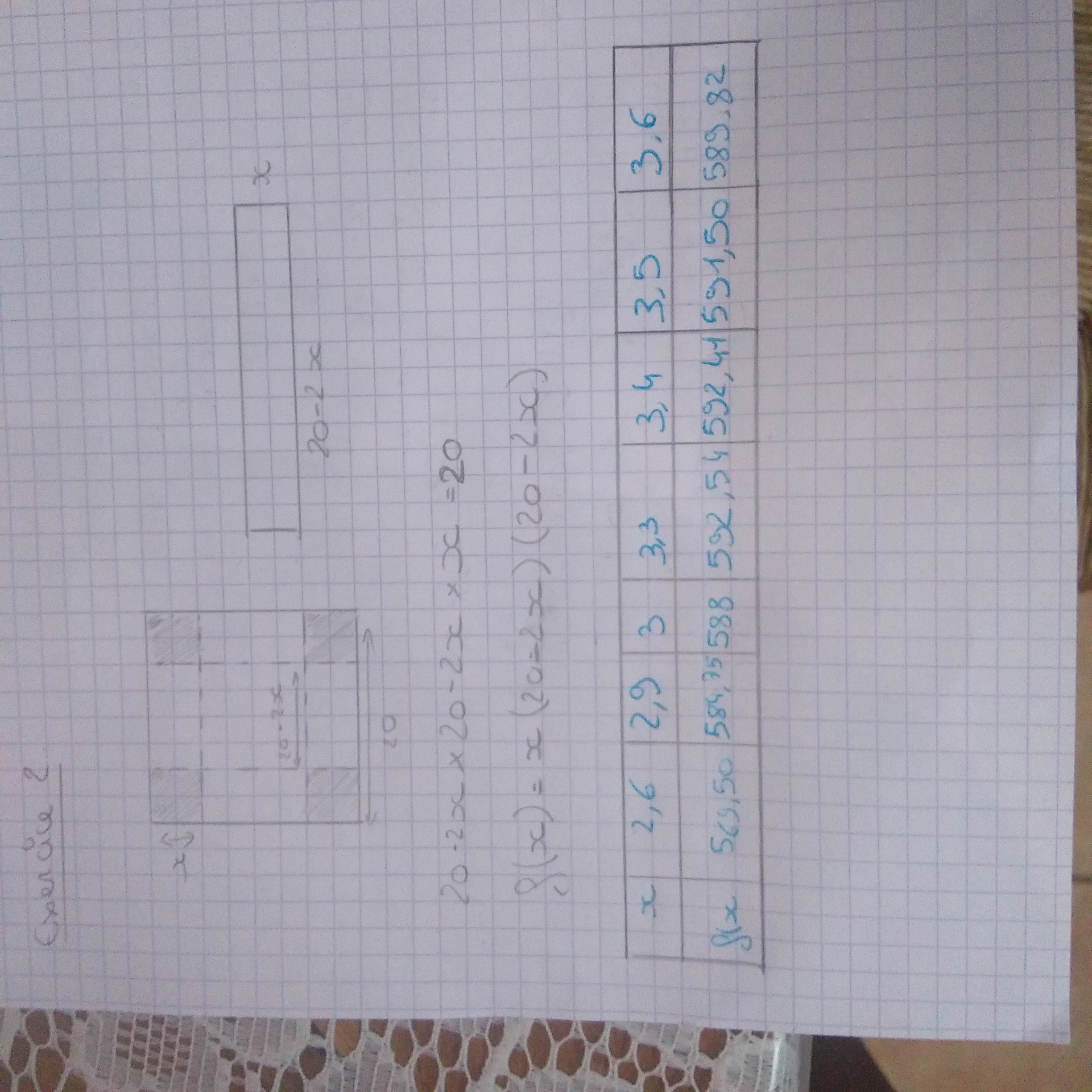 f(x)=x(20-2x)(20-2x)