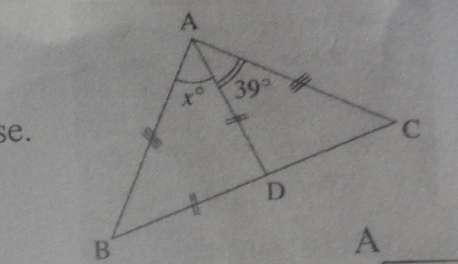 On me demande de trouver x l angle BAD en sachant que l'angle DAC est égal à 39°
