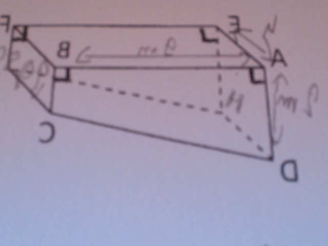 Le calcul du volume me semble plus problématique... J'ai un doute quand à la position des points, peux-tu envoyer une figure ? Sinon, il faut calculer l'aire de la base (le quadrilatère qui est un trapèze rectangle) et multiplier cette aire par la hauteur du prisme.