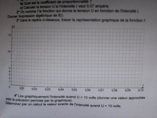 4. Lire graphiquement l'intensité quand U =10 volts (donner une valeur approchée avec la précision