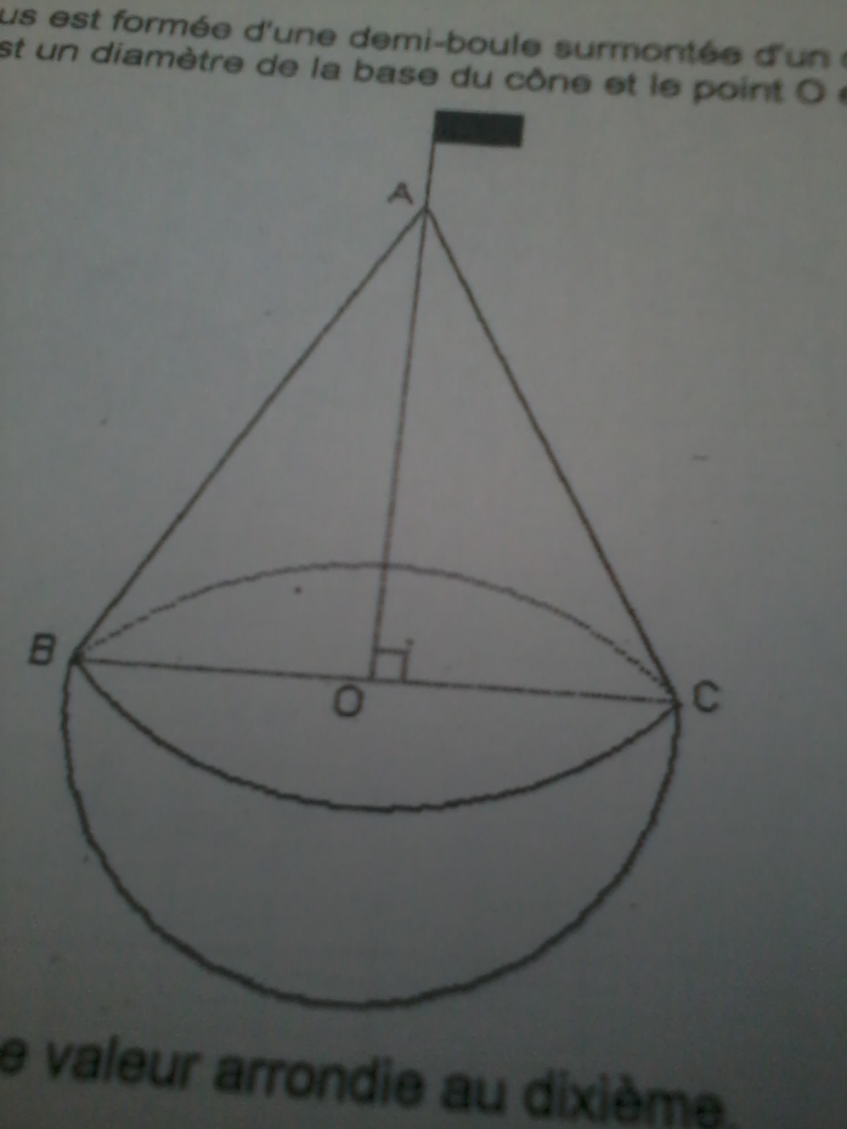 La bise ci-dessous est formée d'une demi-boule surmontée d'un cône de révolution de sommet A.