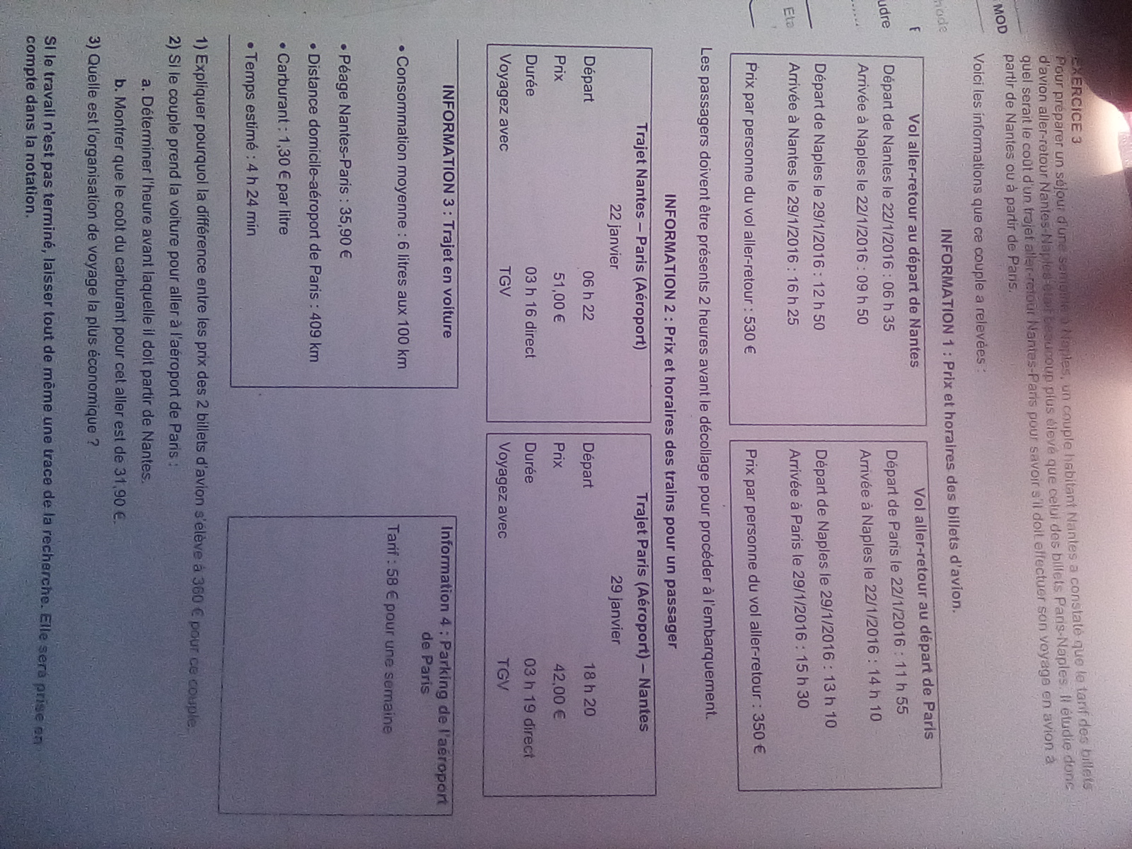 Pour aller de Nantes à Naples le prix d'un ticket est 530 mais si on part de Paris, il coûte seulement 350.