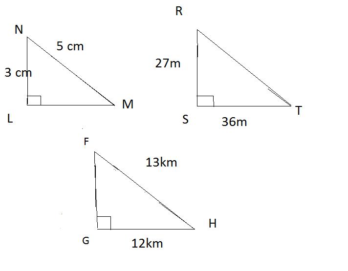 3°)Voici plusieurs triangles rectangles (qui ne sont pas à l'échelle ) dont on connaït deux longueurs :