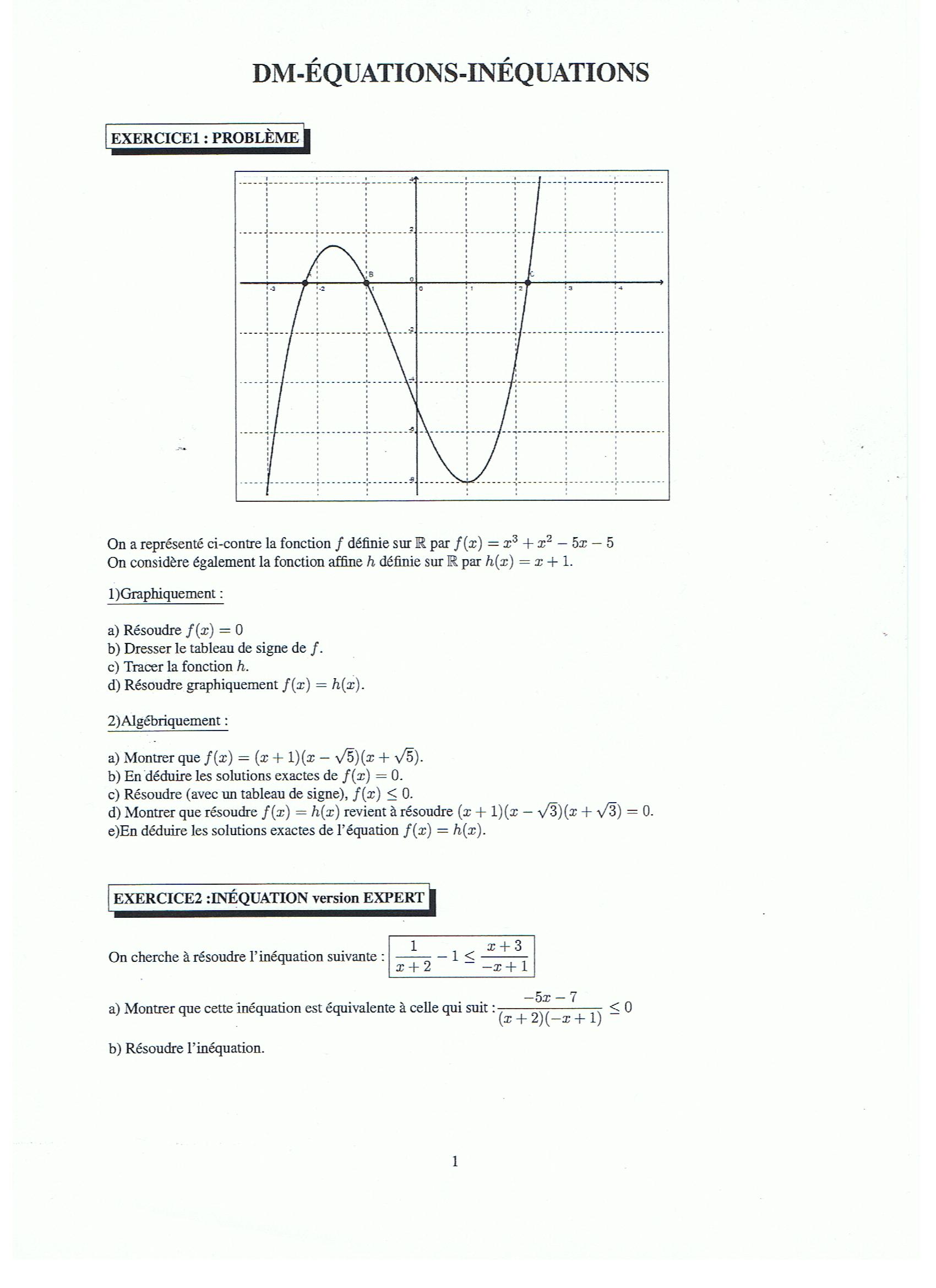 Pour la suite e) : on trouve les solutions de f(x)=h(x) en résolvant cette équation produit nul : un produit vaut zéro quand l'un des facteurs vaut zéro : on trouve donc trois solutions.