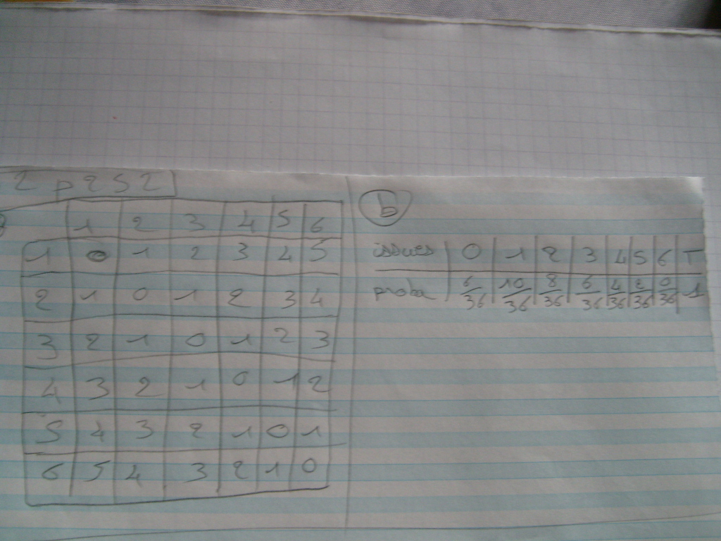 avec l'écart de 2 dés il ya 6/36 chances d'avoir le 3