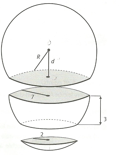 Pour la petite coupe, tu coupes (ou plutôt Franck) alors ta sphère à une distance (d+3) du centre.