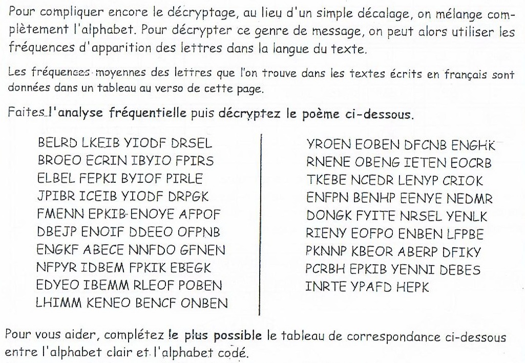 Pouvez-vous me dire si l'alphabet clair correspond a l'alphabet codé