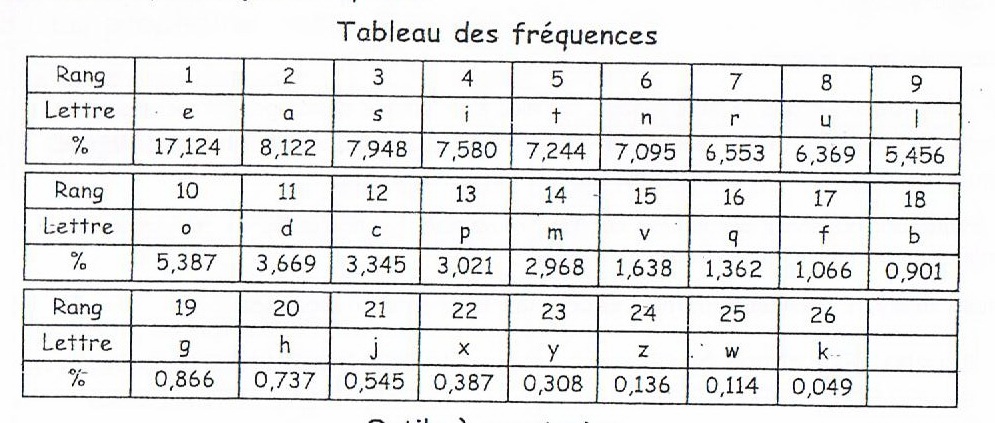 Puis tu continues avec les lettres moins fréquentes.