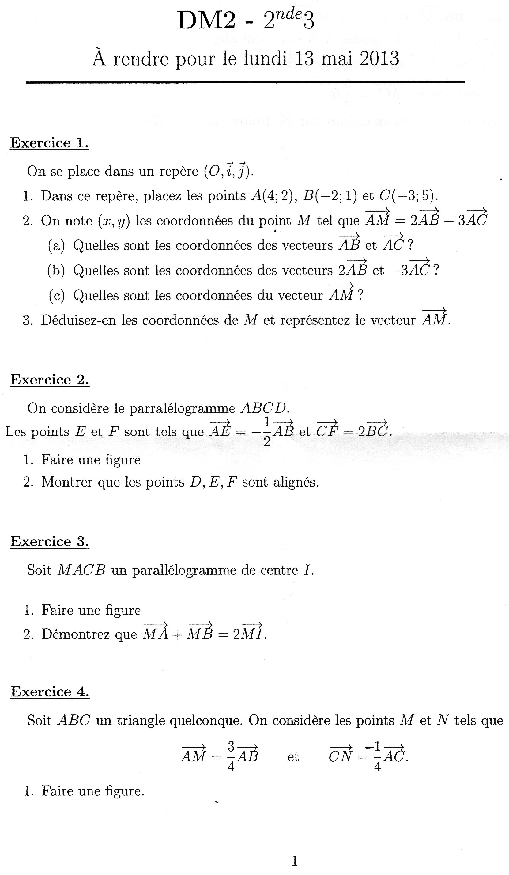 Pour t'aider, sur le début du premier exercice, calcule les coordonnées des vecteurs \(\vec{AB}\) et \(\vec{AC}\) avec la formule :