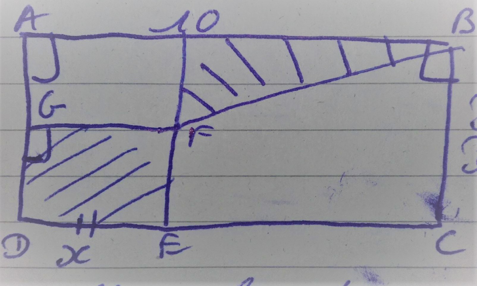 Tu peux commencer par déterminer l'expression de la fonction aire du domaine hachuré (comment s'écrit f(x) qui est la somme de de deux aires ?): tu obtiendras une fonction polynôme du 2nd degré...
