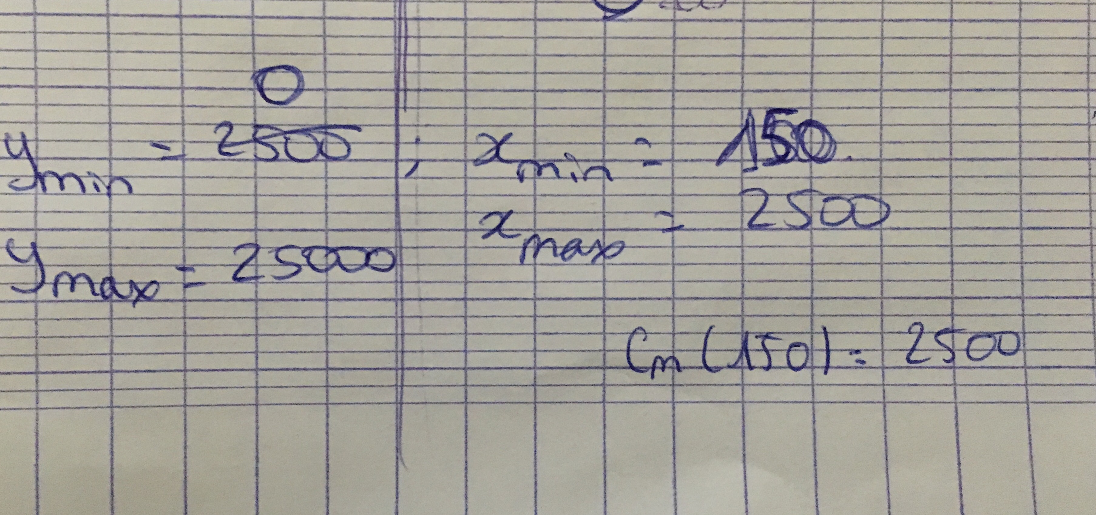 La fenêtre c'est celle qui te permet de voir le minimum de ta courbe, le x0 est 150 et le min est 2500 ce que tu justifie avec le 1a)