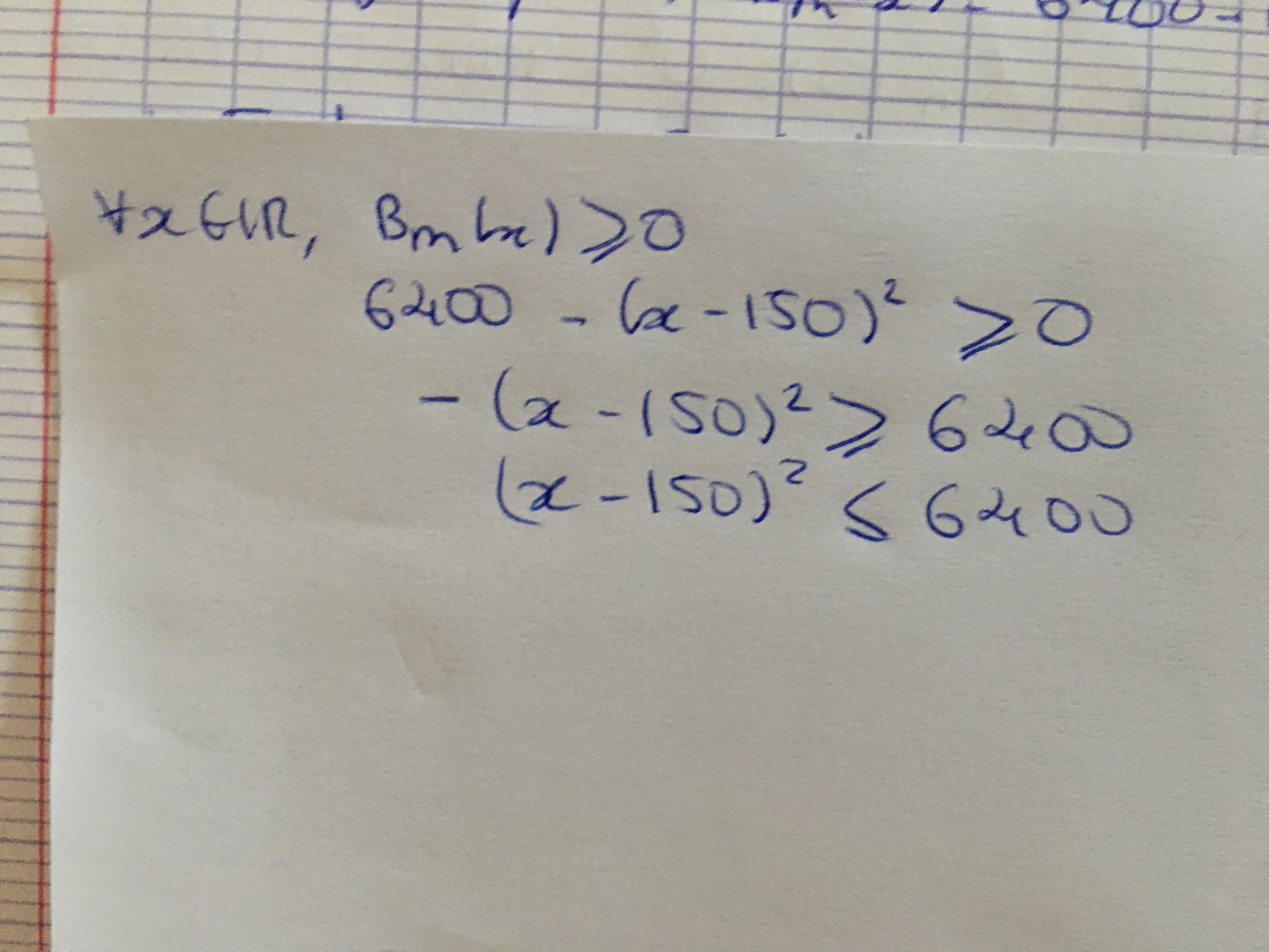 \(B_m(x)= 6400-(x-150)^2\)