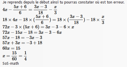 cependant tu pouvais prendre 15 comme dénominateur des deux côtés puisque 15 est un multiple de 3 et de 5 ça aurait simplifié tes calculs.