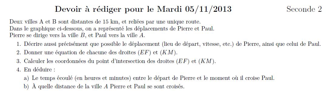 D'accord , mais comment trouver une vitesse , un lieu de départ ou la durée d'un trajet à partir de ce graphique ? Je vois vraiment pas ..