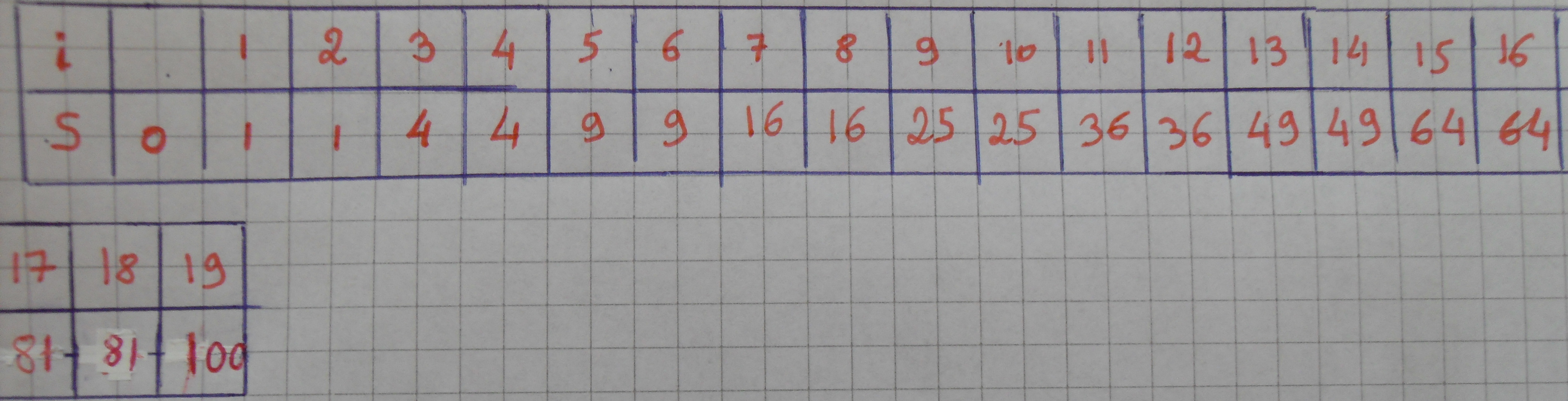 tu as trouvé S =0 puis S = 1 puis S=4 puis S = 9 etc.