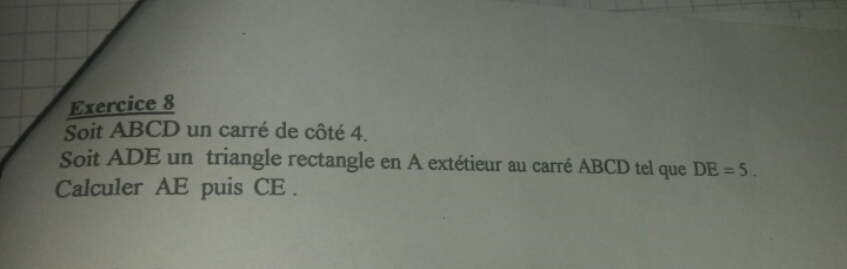 Tu réutiliseras ce résultats pour appliquer le théorème de Pythagore dans un autre triangle rectangle afin de trouver CE.