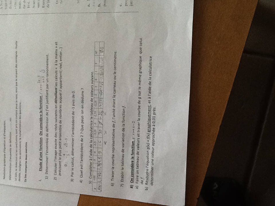 Pour la 4ème question, tu as du faire une erreur même si on doit tout de même arriver à une aberration, ce qui signifie que l'équation n'a pas de solution : 2 admet-il un antécédent par f ?