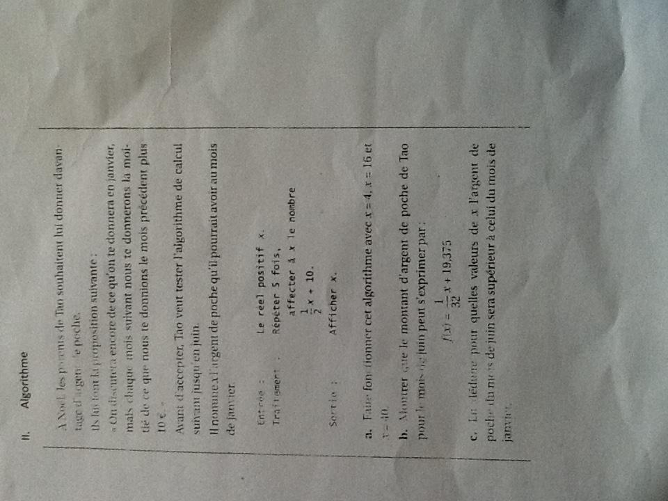 et pour finir je ne comprends pas le calcul de la question b du deuxième exercice sur l'algorithme