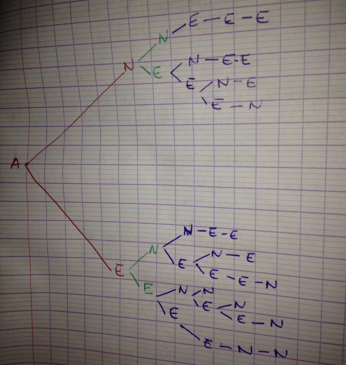 Ton arbre me semble correct, il montre tous les chemins possibles. A chaque sortie de l'arbre, la fourmi a parcouru un chemin différent.