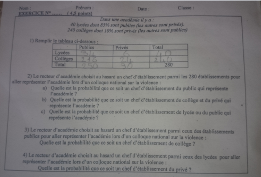 Donc, l'intersection du lycée et du public serait de 34 /280