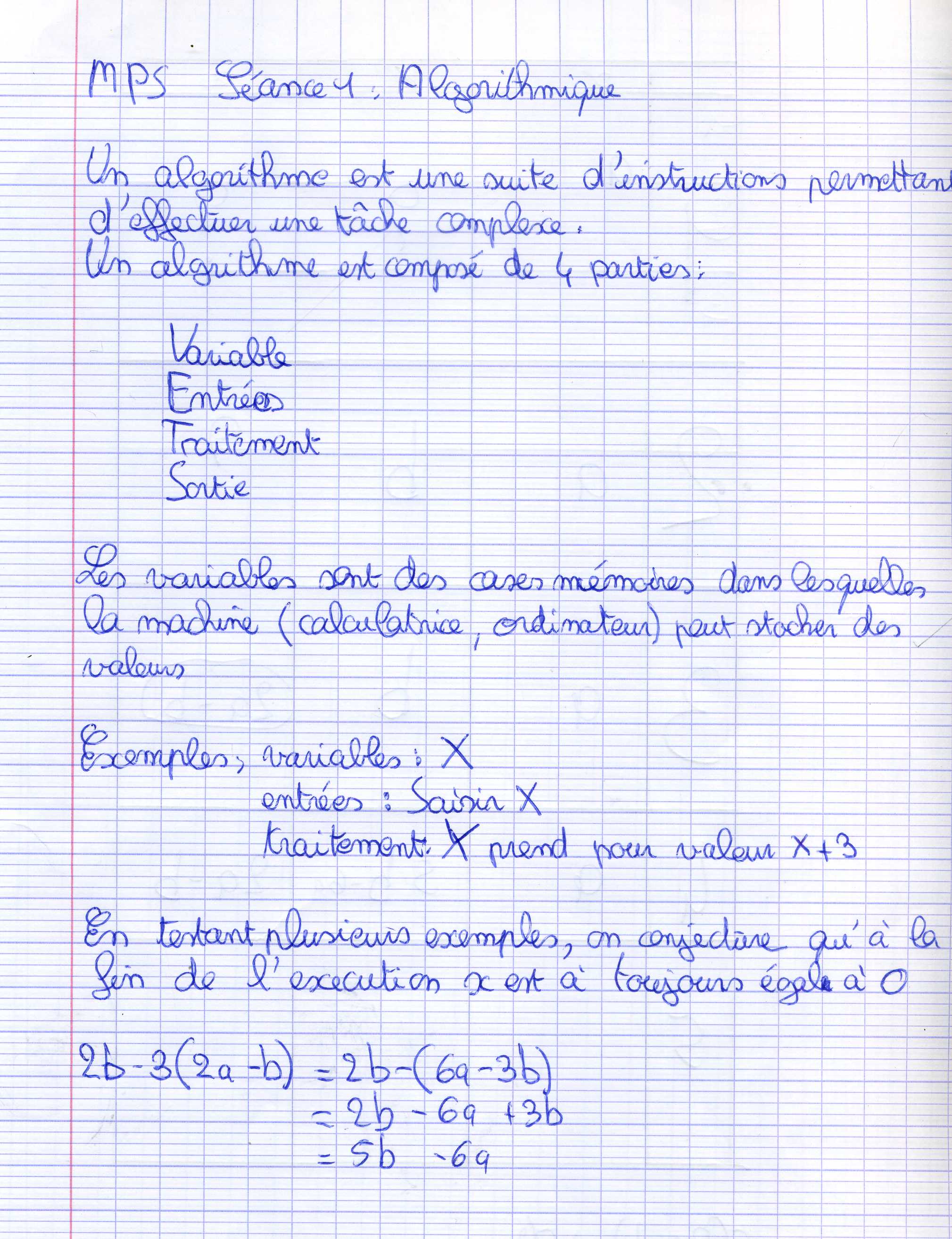 J'ai eu mon 1er cours de MPS qui portait sur les algorithmes. Je ne comprends absolument pas. J'ai demandé autour de moi des explications : personne ne peut m'aider ; j'ai essayé de trouver des vidéos sur internet : je n'en trouve pas qui soit suffisamment simples.