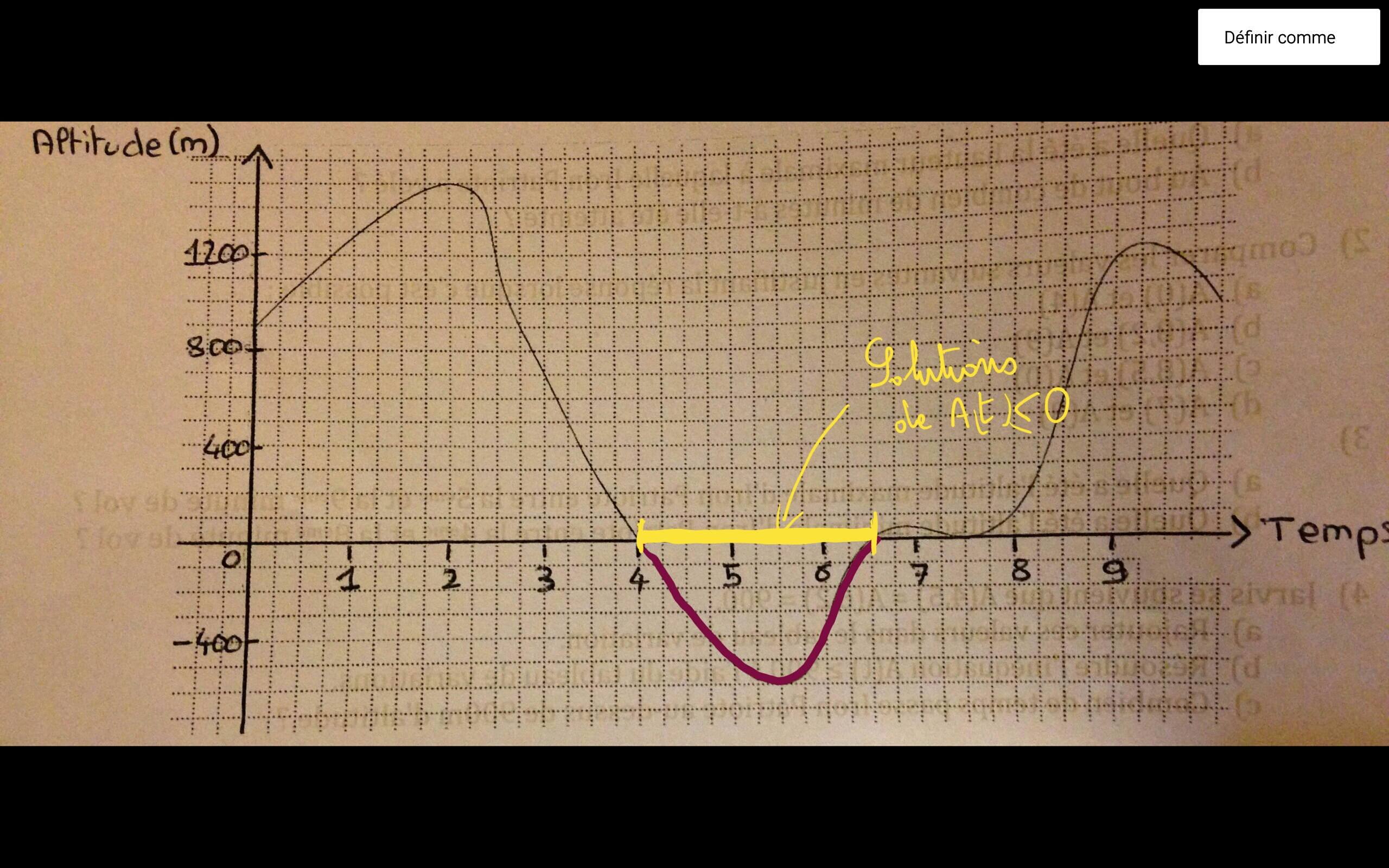 C) résoudre graphiquement l'inéquation A (t) inférieur ou égal à 0