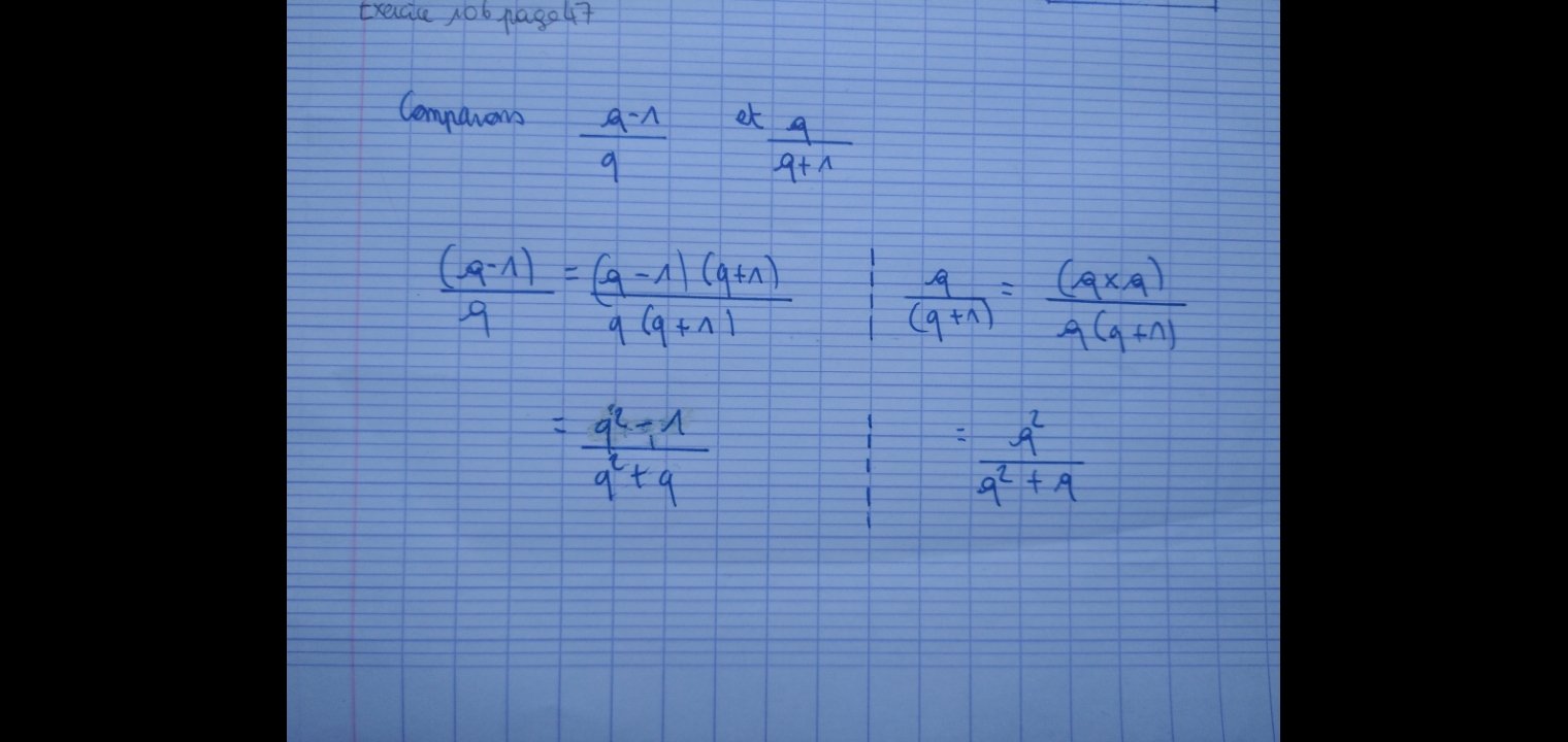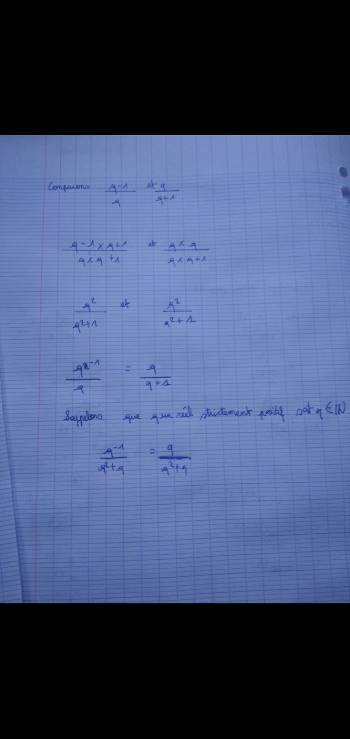 (q-1)/q=(q-1)(q+1)/[q(q+1)] et tu peux ensuite développer le numérateur avec une identité remarquable ou avec la double distributivité.