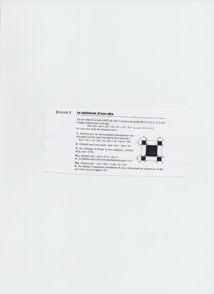 On peut dire aussi que A(x) est l'aire du grand carré ABCD à la quelle on enlève l'aire des 4 petits rectangles