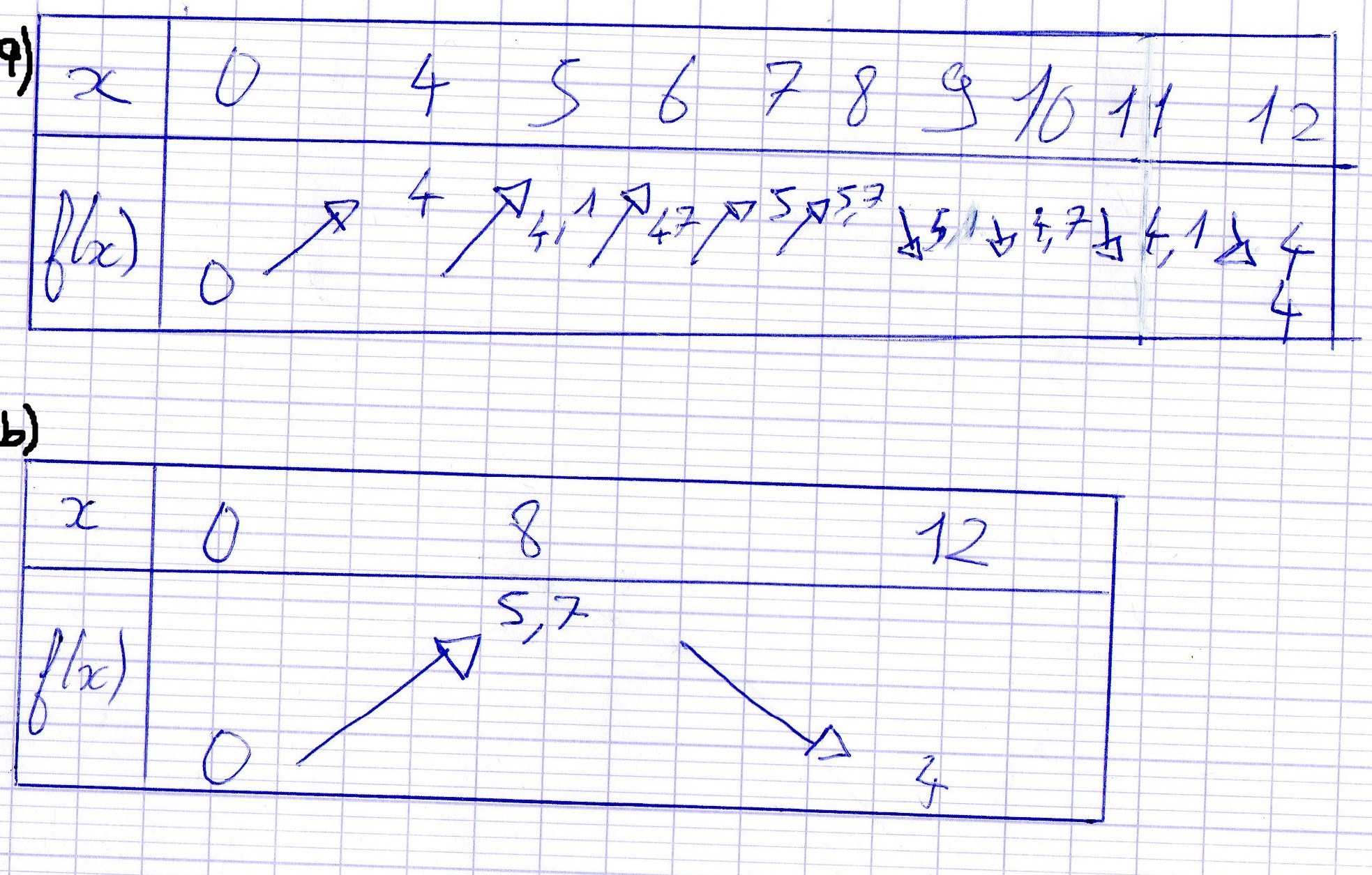 est-ce le a) ou le b) qui est juste dans les 2 tableau de variations ??