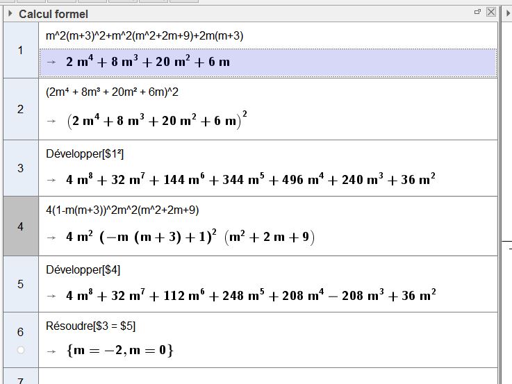 On retrouve bien les solutions \(m=0\) et \(m=-2\).
