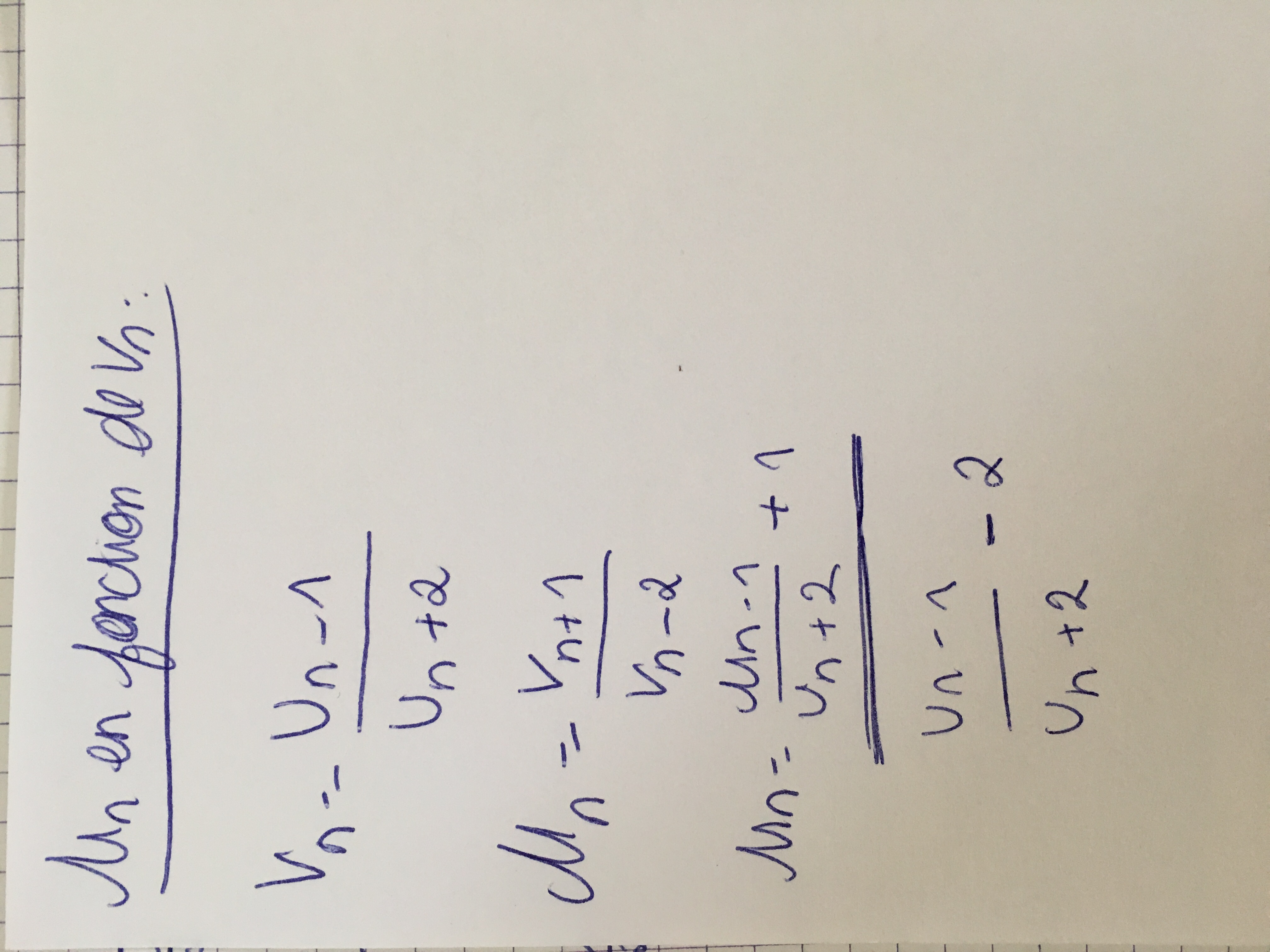 Reprend le calcul de Un en fonction de Vn avant.
