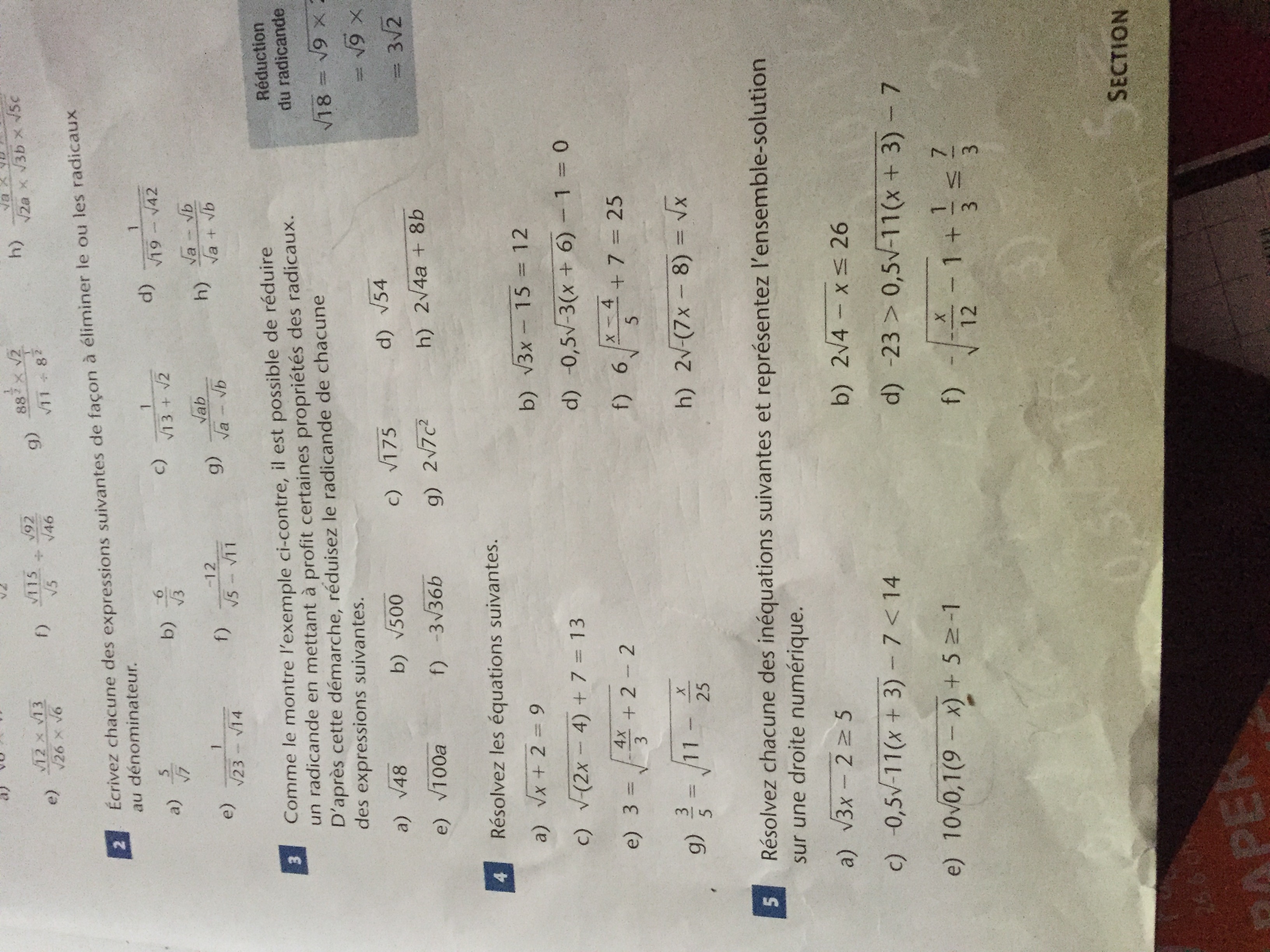 Alors pour Le numéros 5) f) je n’ai pas compris puisque j’arrive pas à la même réponse du corrigé. De plus pour les inéquations (Fonction racine carrée) pouvez-vous me donner des trucs pour savoir de quel côté doit être la courbe mais un truc de base que je sais c’est quand le paramètre a est negatif la courbe descend et quand c’est positif ça monte.Merci de votre aide