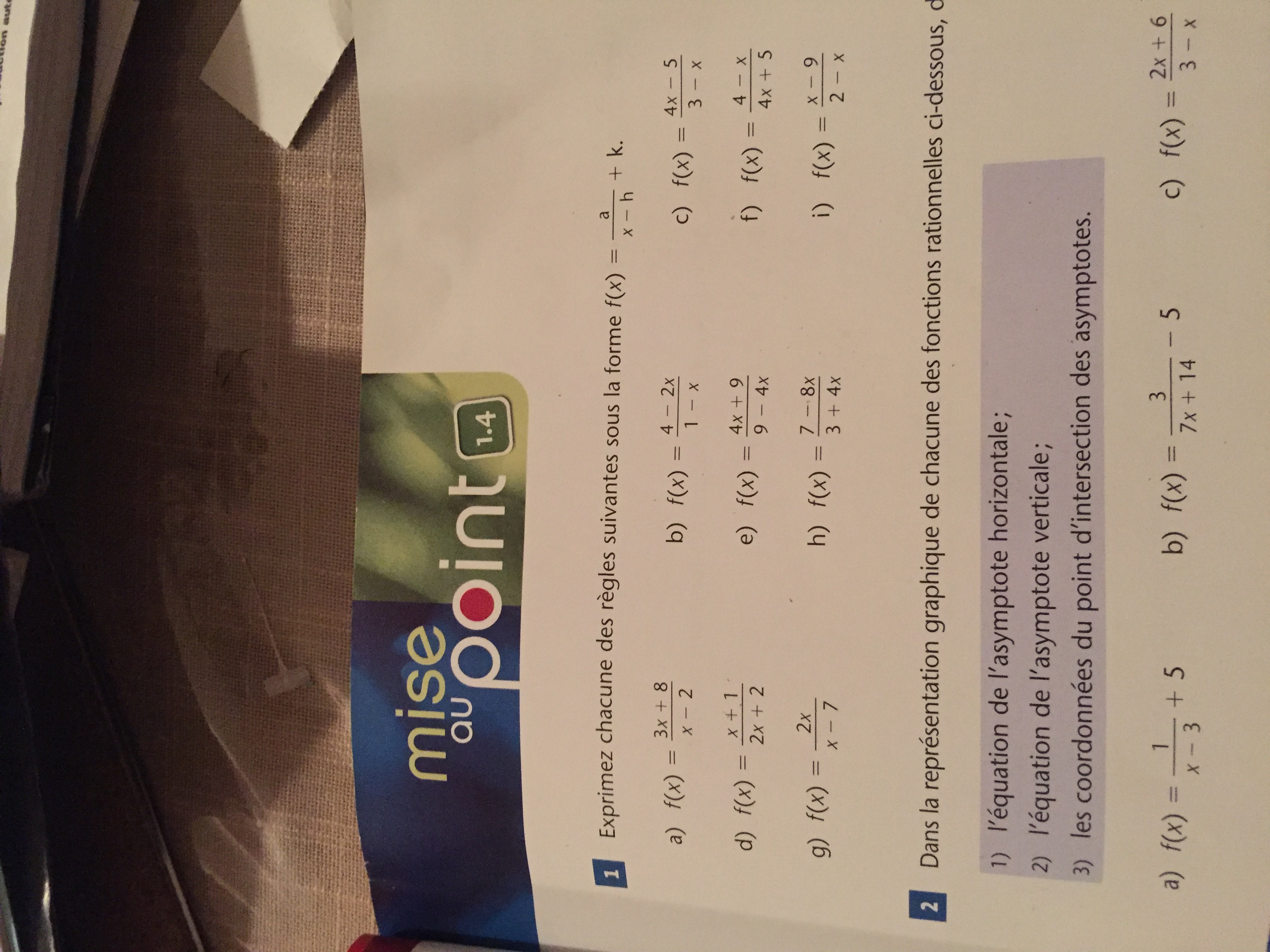Alors pour le numéro 1) j’arrive pas à faire les lettres d),f) et i) puisque mon prof nous a appris à faire les division facile comme 3x-5 divisé par x-1 au lieu de x-1 divisé par 3x-5 donc je ne vois pas par où commencer afin d’avoir la règle sous forme canonique.Merci de votre aide