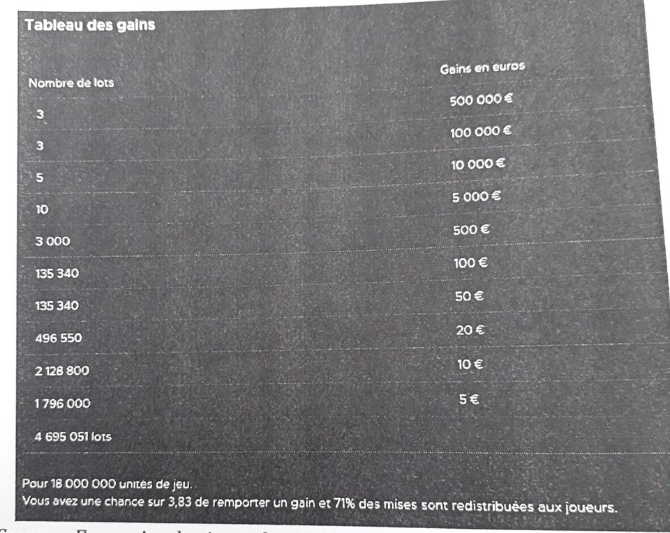 Tu as dans chacun des tableaux le nombre de tickets gagnants sur un total de billets, il te reste à faire la proportion de chacun.