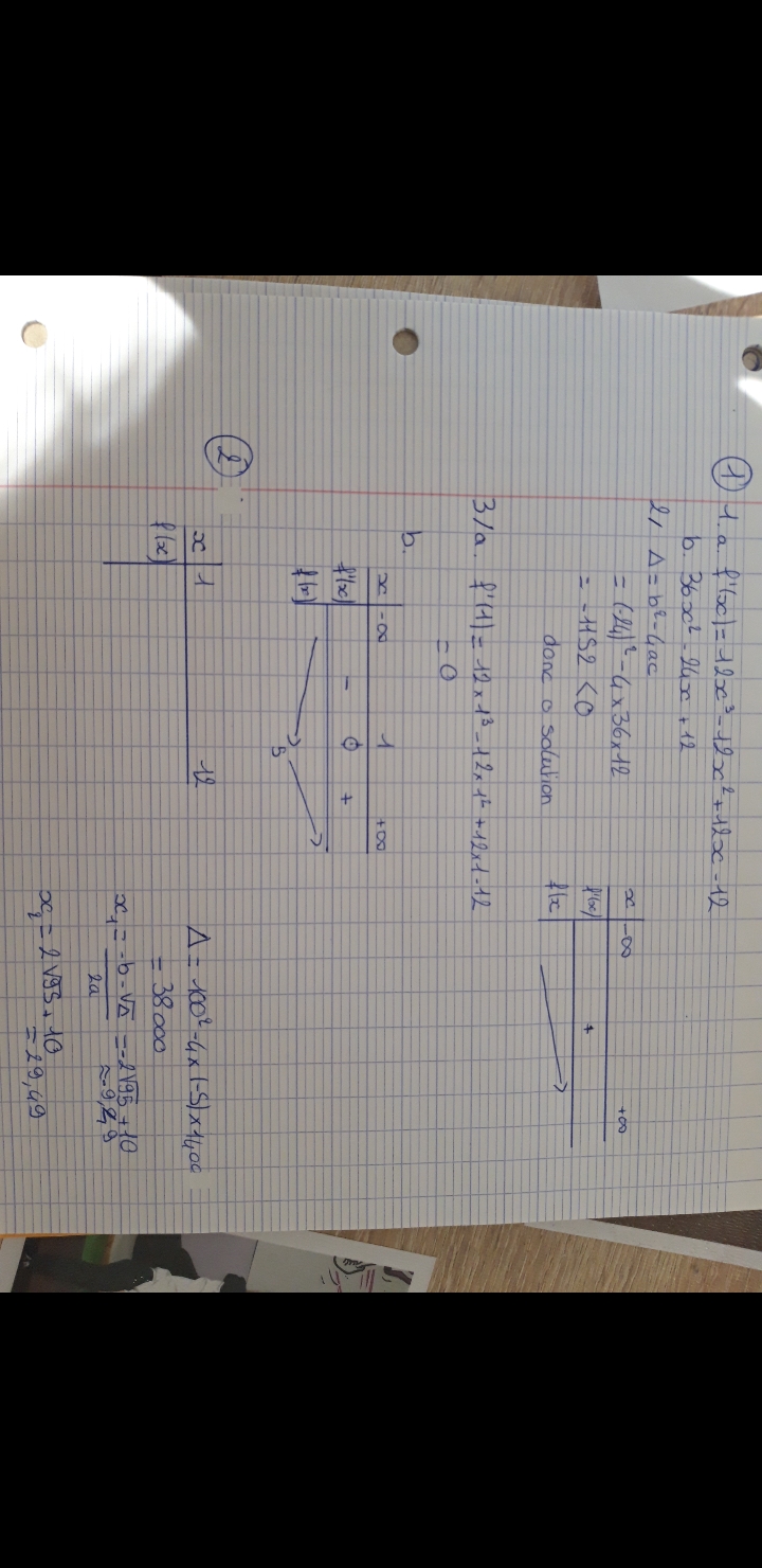 il faut étudier le signe de la dérivée, le calcul du delta c'est quand tu as un polynôme du second degré, ici c'est du premier degré.