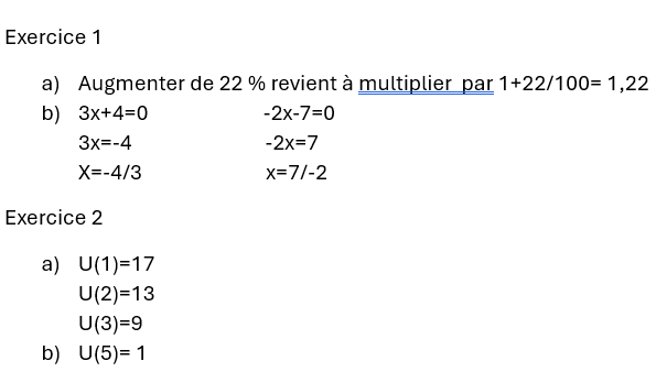 \(U_n=U_0+n\times r\) et non \(U_n=U(0)+n\times r\) ce qui donne \(U_n=21-4n\)