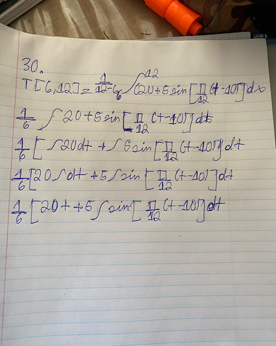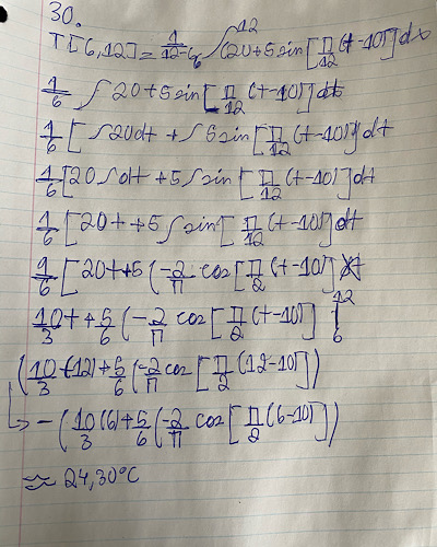 Au cours de la démarche vous allez remarquez que dans l’intégrale j’ai enlever les nombres car on n’a pas appris dans mon cours les changements de bornes donc a la fin on met les bornes dans ce cas de 6 et 12 pour calculer la réponse avec f(b) - f(a).