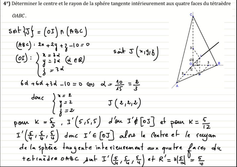 On appelle J le point d’intersection de (OI) et (ABC).
