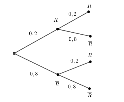 un jeton rouge donc rouge puis vert ou vert puis rouge : p = 0,16+0,16 = 0,32