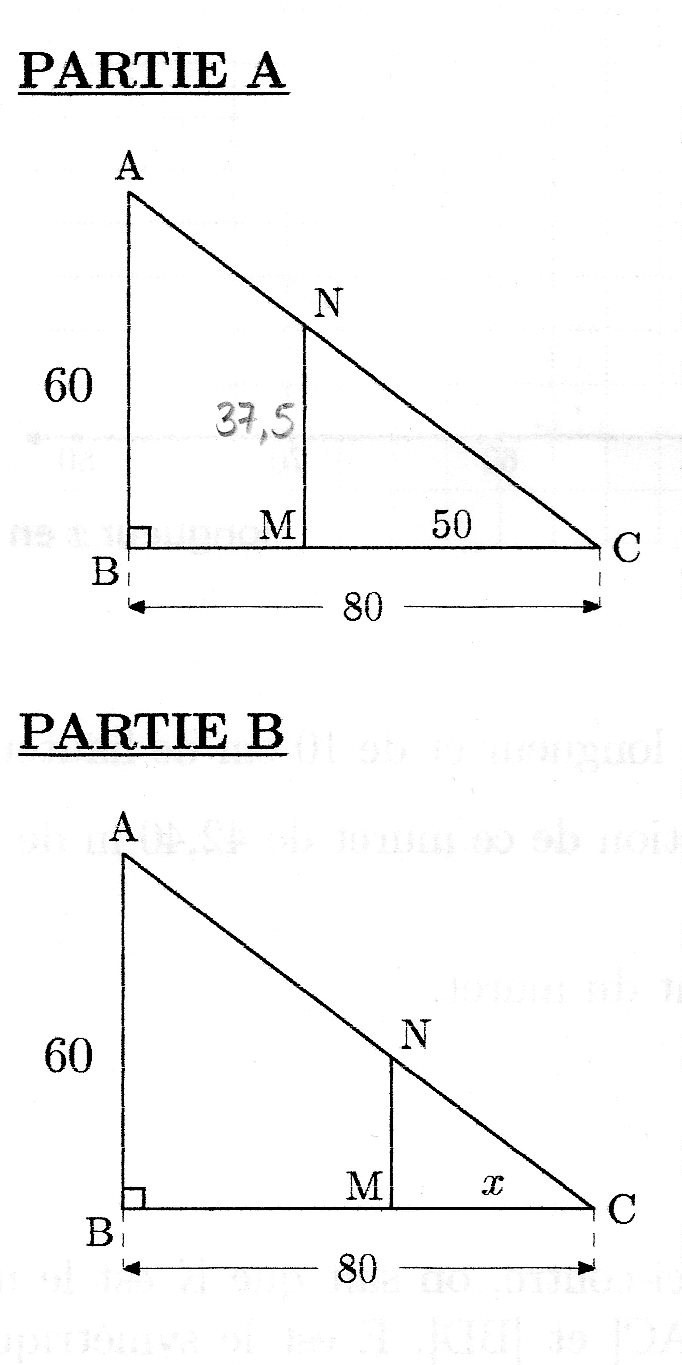 Dans tout ce problème, l'unité de longueur est le mètre. On donne : AB = 60 et BC = 80.
