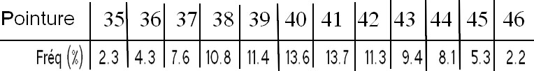 Le syndicat de la chaussure a réalisé une étude auprés d'un échantillon représentatif de 1012 adultes pour connaitre la repartition de pointure.
