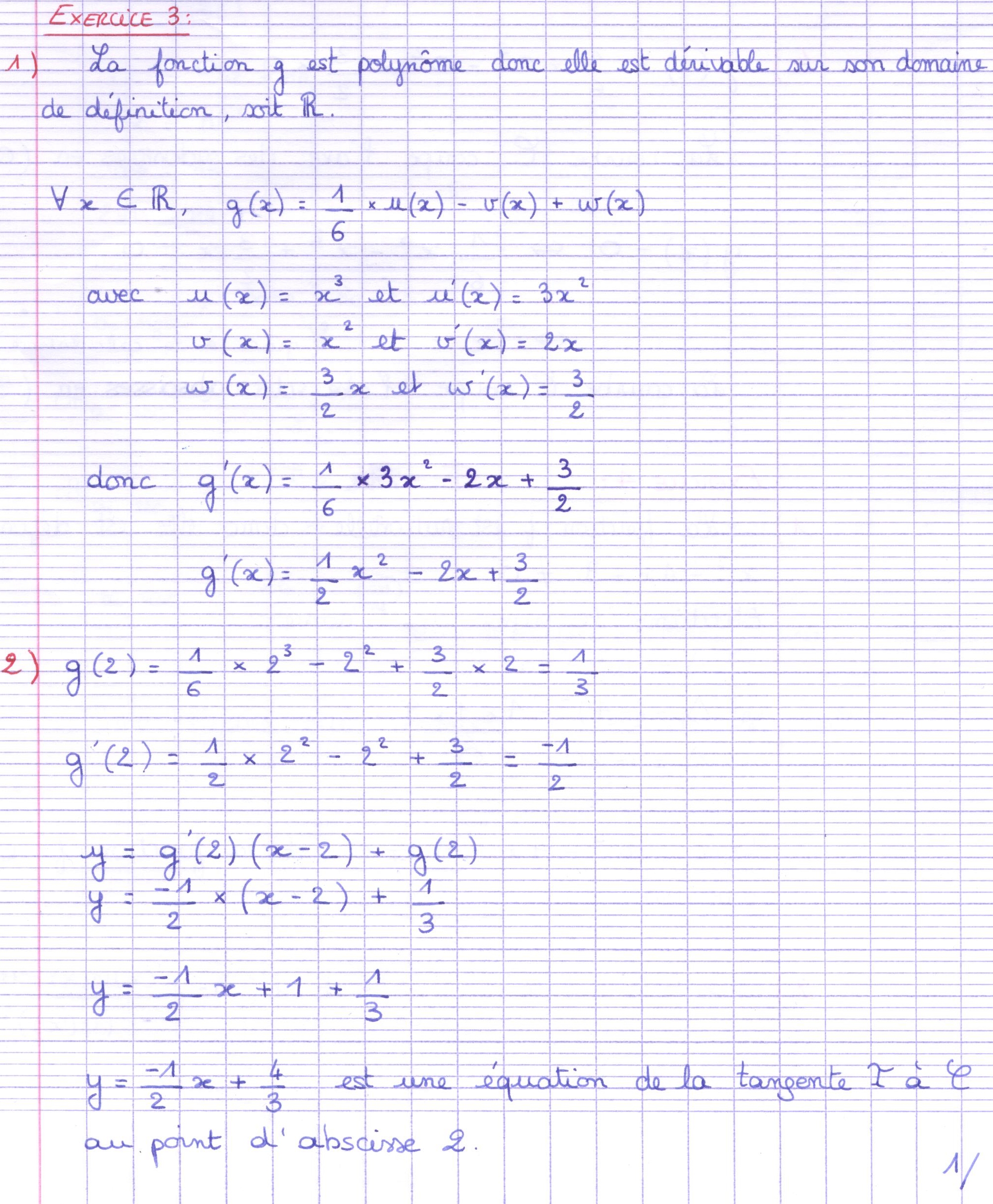 Pour la question 5 de l'exercice 3, est-ce bien cela ?