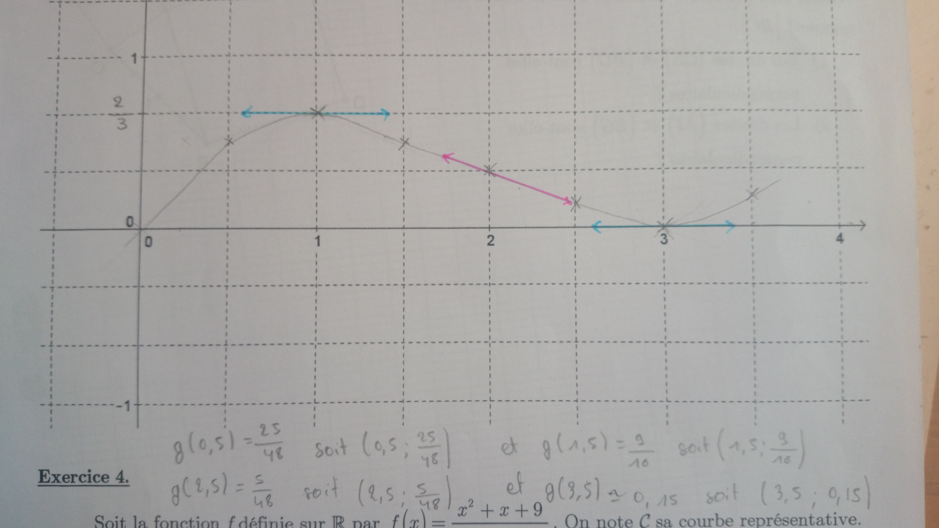 Tu ne sais pas placer les points de coordonnées (0,5 ; 25/48) et (1,5 ; 9/16) ?