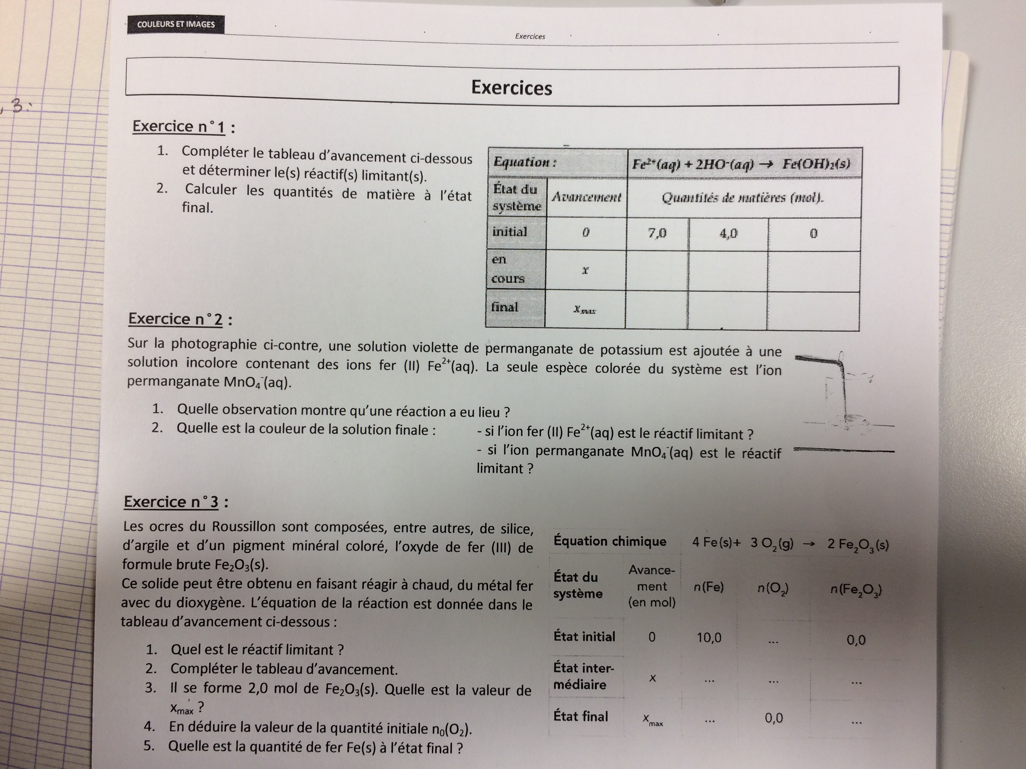 Re: Avancement d’une réaction chimique