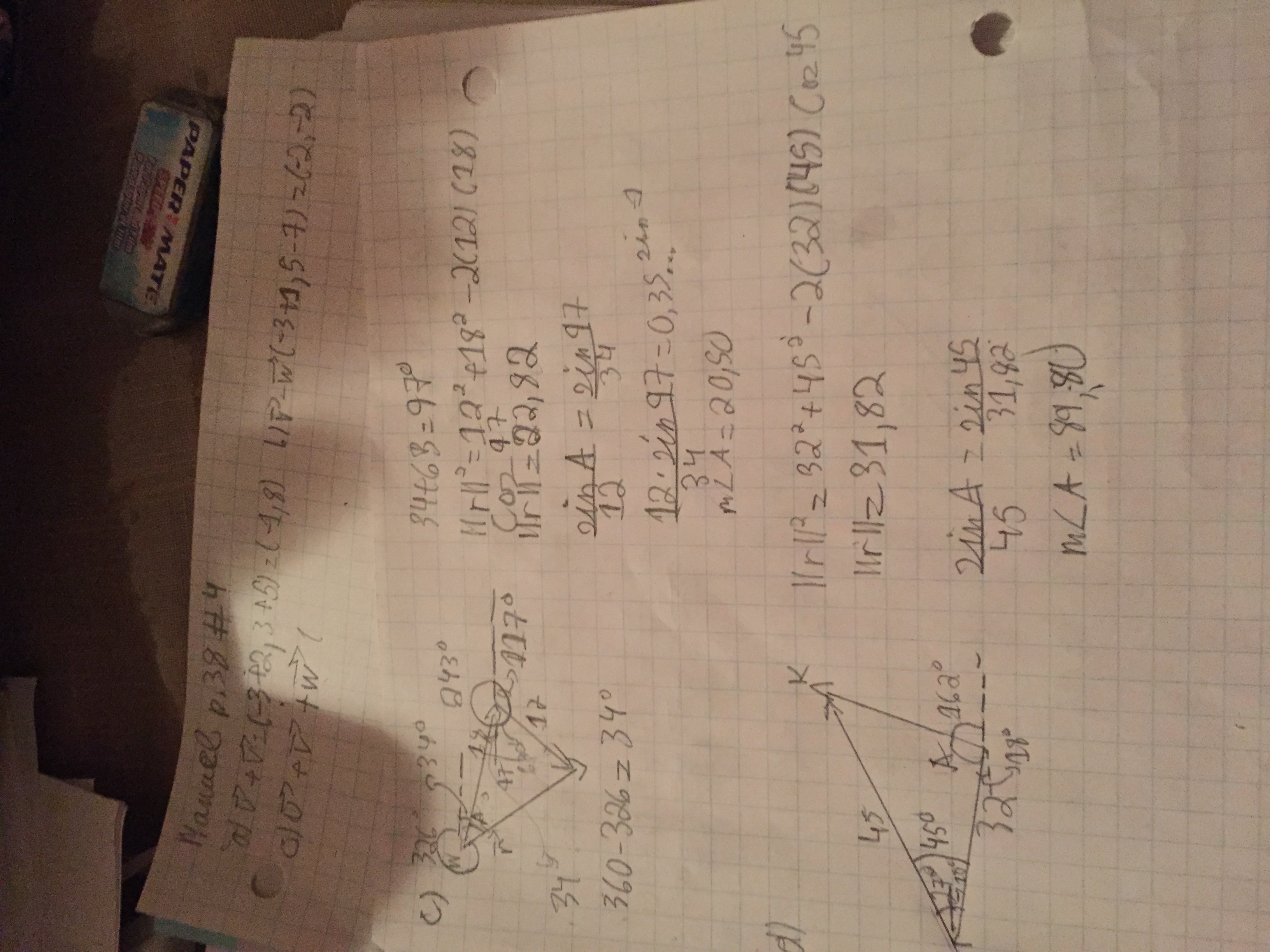 Le d) aussi je rencontre des difficultés voici ce que j’ai pu faire 180-162=18 degré puisque mes angles sont alternes-externes l’angle en bas de 27 est 18 et si on additionne on obtient le vrai angle qui est 45 degré et on peut faire le calcul pour trouver la norme mais comment trouver la norme?