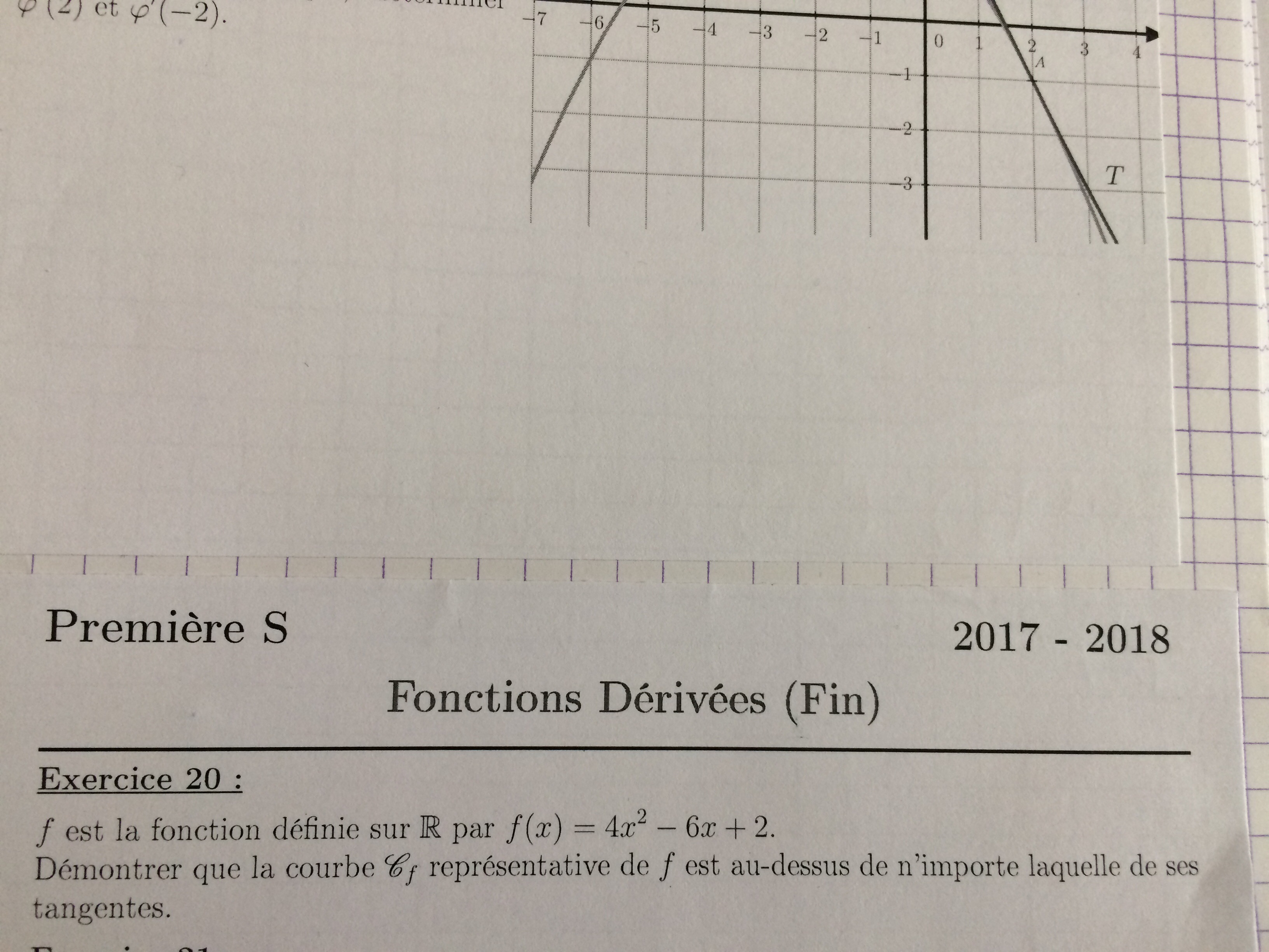 Il faut que la courbe soit au- dessus de n'importe laquelle de ses tangente donc pour l'abscisse a, je fais la différence de ordonnée du point sur la tangente et celle du point sur la courbe. Si cette différence est positive la tangente est au dessus sinon elle est au dessous.
