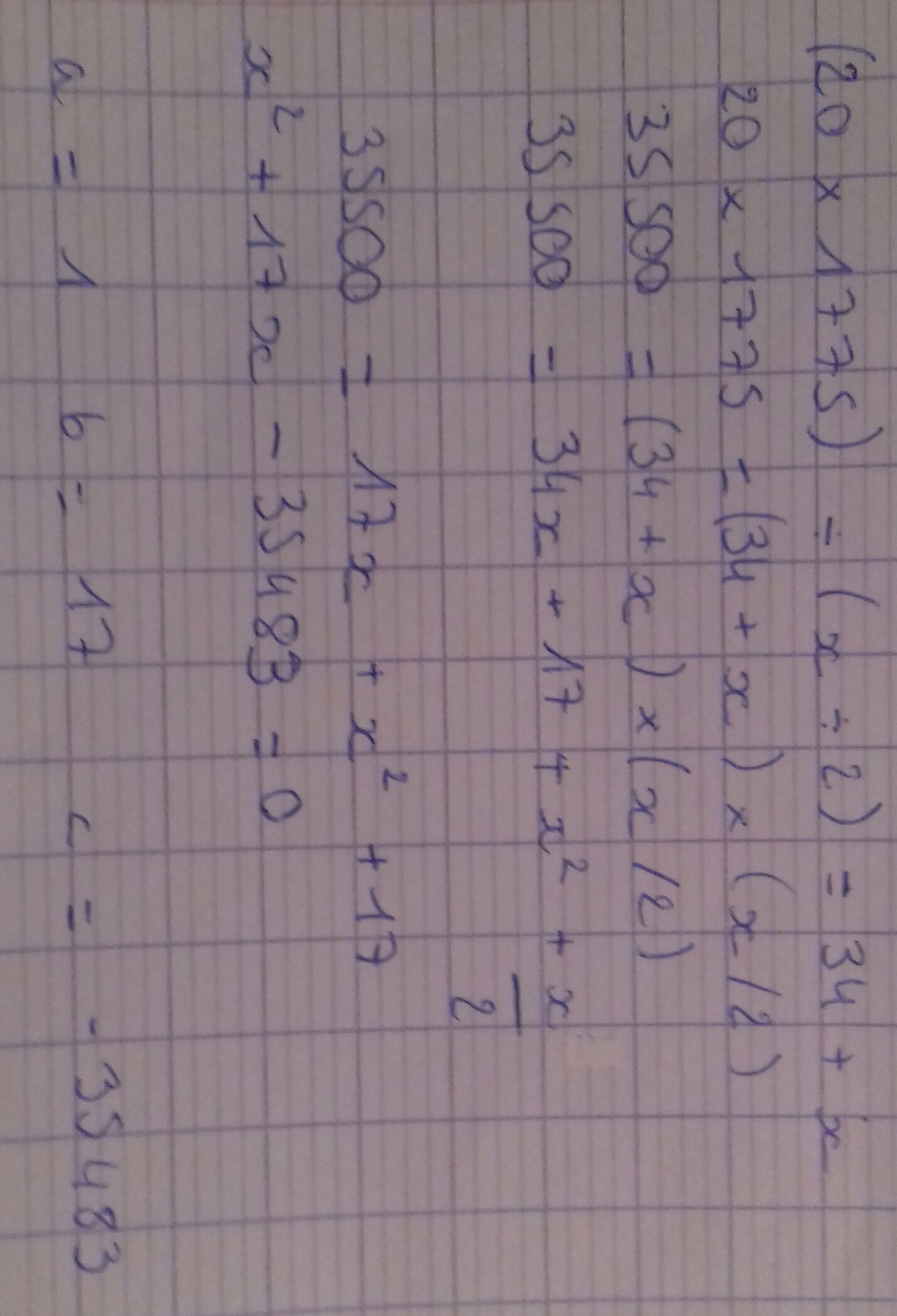 \(20 \times 1775 = (34+x)(x/2)\)