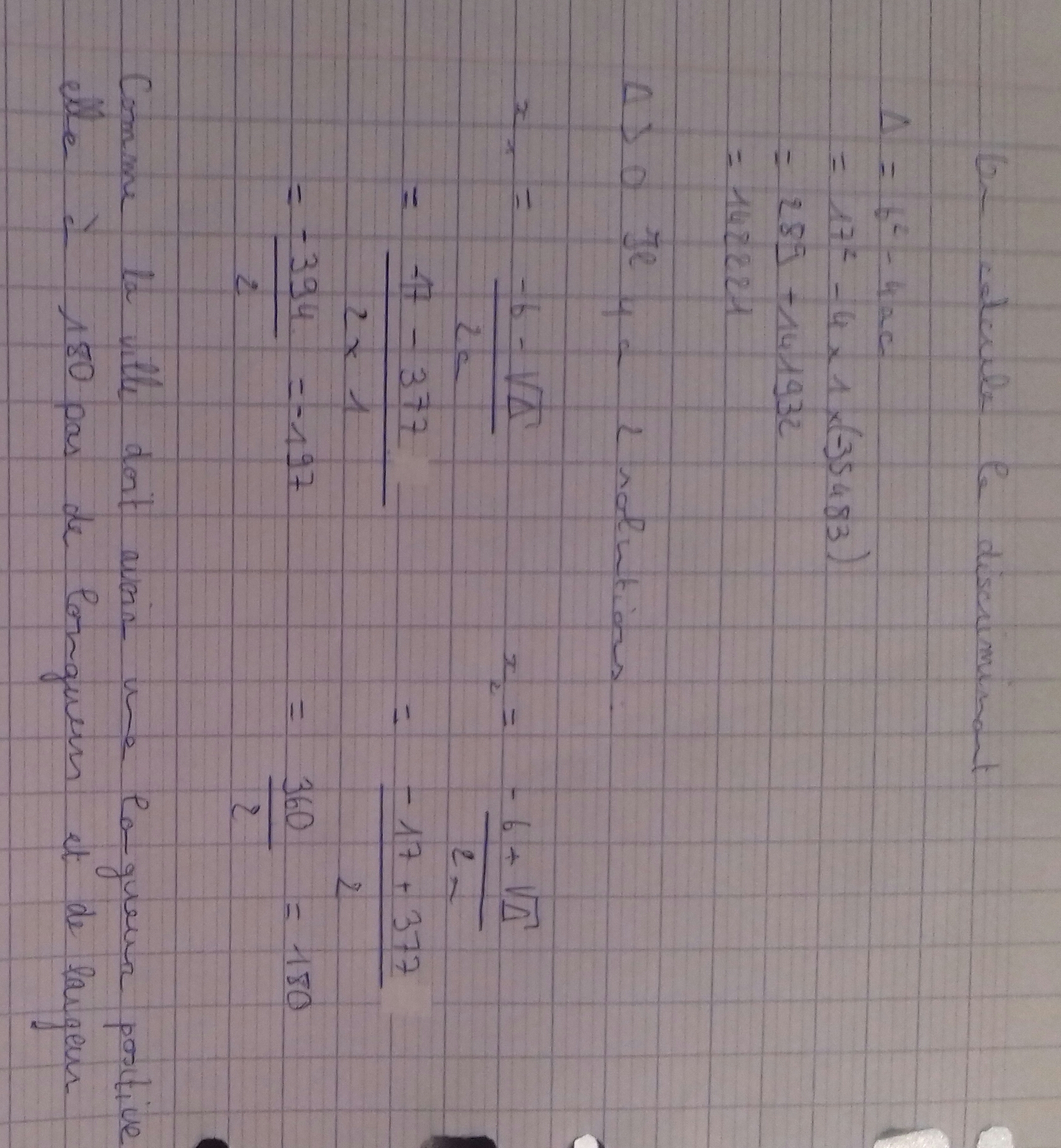 Tu as fait une erreur d'étourderie dans le calcul des solutions, le \(\Delta\) est 142289 et non 142000 reprends tes calculs.