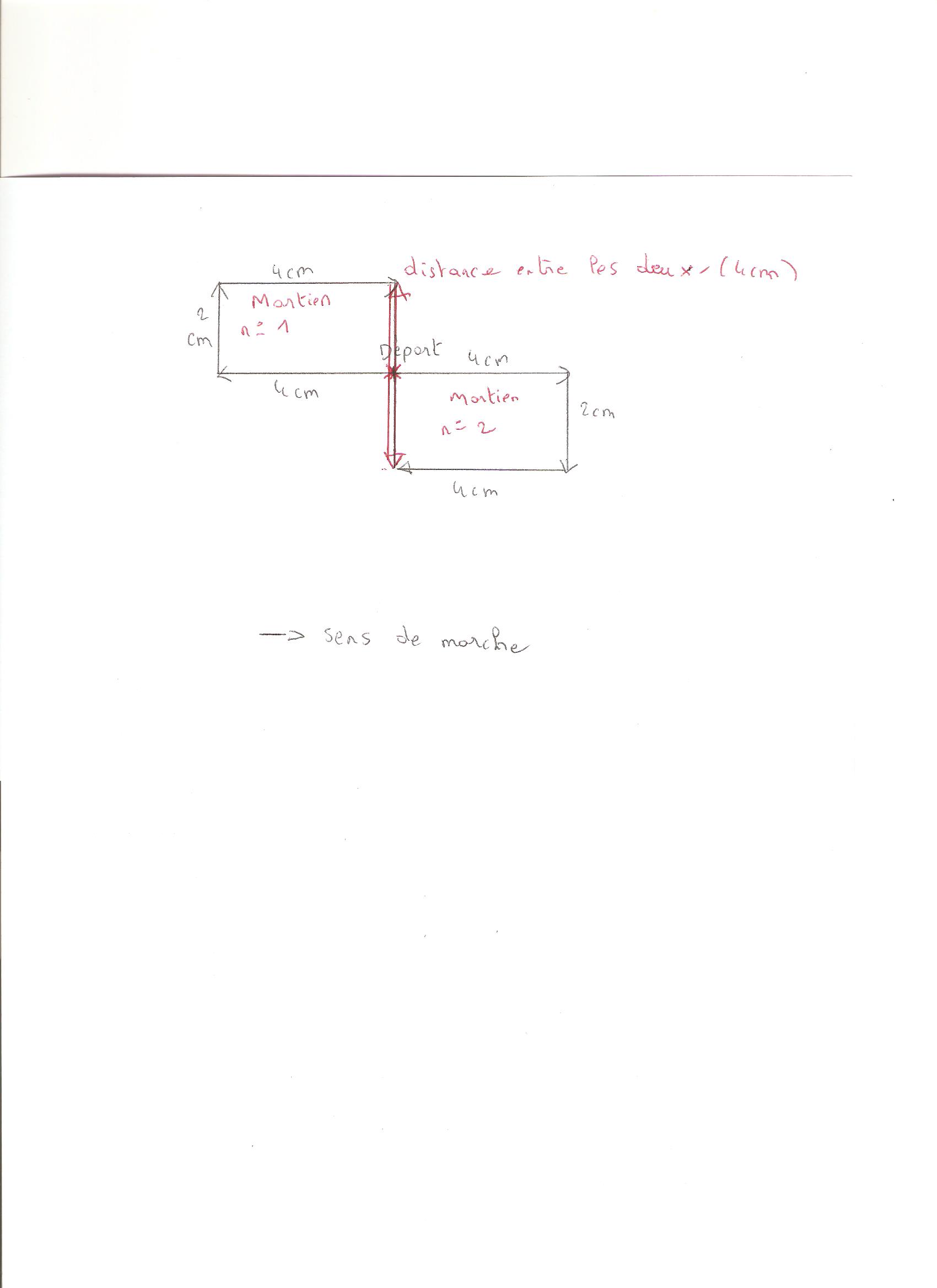 moi j'ai calculer 4 m . en prenant exemple sur un rectangle/ (ab )4m ( bc) 2m ( cd) 4m en considérant ( d e ) 2m la distance restante. donc si ils partent du meme point il y aurai pour moi 2m pour l'un et 2m pour l'autre. quand pensez vous? merci